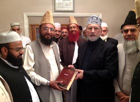 مرکزی جماعت اہلسنت برطانیہ کے وفد نے 28 اگست روز منہاج القرآن انٹرنیشنل کے سربراہ شیخ الاسلام ڈاکٹر محمد طاہرالقادری کے ساتھ ملاقات کی، وفد میں علامہ نثار احمد بیگ، علامہ قاضی عبدالعزیز چشتی، علامہ عبدالطیف قادری، علامہ مفتی فضل احمد قادری، علامہ بوستان قادری، حافظ ظہیر احمد نقشبندی اور علامہ انوار حسین کاظمی شامل تھے۔ وفد نے ڈاکٹر طاہرالقادری کو برمنگھم میں اتوار کے روز منعقد ہونے والی کانفرنس میں خصوصی شرکت کے لیے آمد پر خوش آمدید کہتے ہوئے ان کی دین اسلام کے لیے عالمی سطح پر اور عقیدہ اہلت سنت والجماعت کے لیے علمی و تحقیقی خدمات کو خراج تحسین پیش کیا۔ اس موقع پر ڈاکٹر محمد طاہر القادری نے وفد کے اراکین کو قرآن و احادیث کے مختلف موضوعات پر نئی کتب اور ان کی انفرادیت کے حوالے سے معلومات دیں، انہوں نے کہا کہ ختم نبوت کانفرنس میں "اہل سنت کا عقیدہ ختم نبوت" پر وہ نئی تحقیق کے ساتھ منفرد علمی گفتگو کریں گے اس موقع پر تحریک منہاج القرآن کے مرکزی نائب امیر علامہ محمد صادق قریشی، منہاج القرآن برطانیہ کے امیر ظہور احمد نیازی، علامہ اشفاق عالم قادری، علامہ بلال اشرفی، علامہ سہیل احمد صدیقی اور حاجی عبدالغفور بھی موجود تھے۔