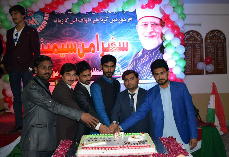 مصطفوی سٹوڈنٹس موومنٹ چکوال کے زیراہتمام قائد انقلاب کی 67 ویں سالگرہ کے موقع پر شاندار تقریب کا اہتمام کیا گیا۔ تقریب میں طلبہ کی کثیر تعداد نے شرکت کی۔ تقریب میں ملک ارسلان سینئر نائب صدر ایم ایس ایم شمالی پنجاب نے خصوصی شرکت کی۔ تقریب کے آخر پر قائد انقلاب ڈاکٹر محمد طاہرالقادری کی سالگرہ کا کیک کاٹا گیا اور ان کی صحت و سلامتی کیلئے دعائیں بھی کی گئیں۔