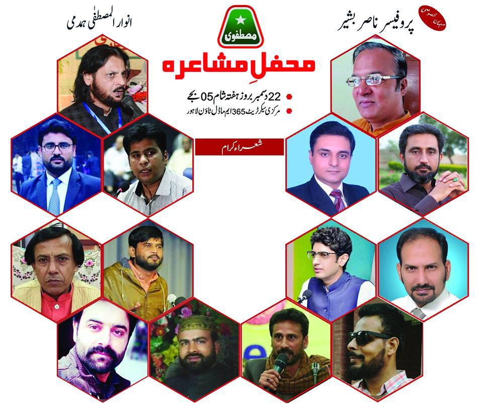 لاہور (21 دسمبر 2018) مصطفوی سٹوڈنٹس موومنٹ (لٹریری سوسائٹی) کے زیراہتمام کل پاکستان محفل مشاعرہ کل (ہفتہ) کو منعقد ہو گا۔ ملک بھر سے نامور شعراء کرام شرکت کرینگے۔ مشاعرہ کی صدارت ناظم اعلیٰ تحریک منہاج القرآن خرم نواز گنڈاپور کرینگے جبکہ معروف شاعر پروفیسر ناصر بشیر مہمان خصوصی ہونگے۔ دیگر مہمانان اعزاز میں اسلم سعیدی، انوار المصطفیٰ ہمدمی، شہزاد قیس، محمد ادریس قریشی، آغر ندیم ساحر، عاطف بشیر، اظہرفراغ، ندیم بھابھہ، حمزہ ہاشمی سوز، اسحاق حارث، جمشید احمد، جانزیب سحر، ضمیر احمد ضمیر، ندیم راجہ اور عاطف بشیر شامل ہیں۔ مرکزی صدر مصطفوی سٹوڈنٹس موومنٹ چوہدری عرفان یوسف، ضیاء الرحمن ضلج، احسن ایاز، یونس نوشاہی، احسان سنبل، میاں عنصر، فراز ہاشمی، اخلاق حسین، عمران اختر قادری، فرحان عزیز سمیت دیگر رہنما بھی اس موقع پر موجود ہونگے۔