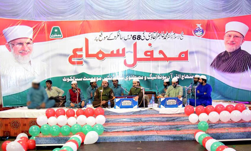 مصطفوی سٹوڈنٹس موومنٹ اور منہاج یوتھ لیگ سیالکوٹ کے زیراہتمام شیخ الاسلام ڈاکٹرمحمد طاہرالقادری کی 68ویں سالگرہ کے سلسلہ میں "محفل سماع" کا انعقاد کیا گیا، جس میں خصوصی شرکت صدر مصطفوی سٹوڈنٹس موومنٹ پاکستان چوہدری عرفان یوسف اور صدر منہاج یوتھ لیگ پاکستان مظہر محمود علوی کے ساتھ ساتھ سابق مرکزی صدر منہاج یوتھ لیگ بلال مصطفوی، سید فراز ہاشمی سوشل میڈیا ہیڈ ایم ایس ایم پاکستان، محمد یونس نوشاہی مرکزی ڈپٹی سیکرٹری جنرل ایم ایس ایم پاکستان، فرحان عزیز صدر ایم ایس ایم سنٹرل پنجاب اور تحریک منہاج القرآن سیالکوٹ، منہاج یوتھ لیگ اور مصطفوی سٹوڈنٹس موومنٹ کے ذمہ داران اور کارکنان نے بڑی تعداد میں شرکت کی نے شرکت کی۔