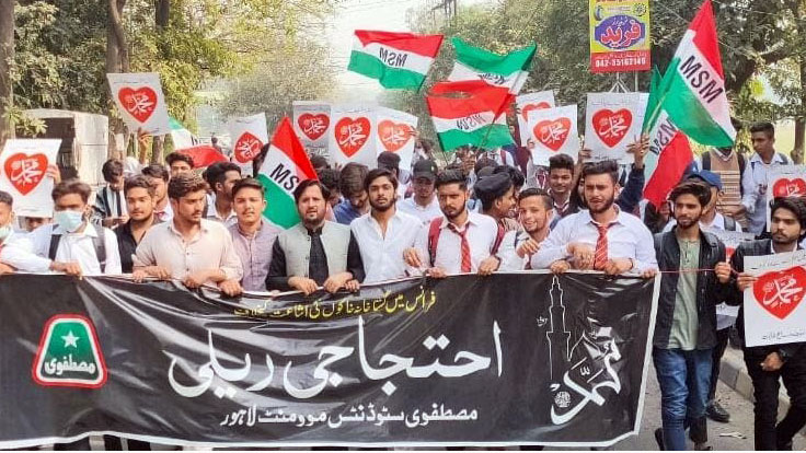 لاہور (11 نومبر 2020) مصطفوی سٹوڈنٹس موومنٹ کے زیراہتمام ماڈل ٹاؤن کالج سے اکبر چوک تک ریلی نکالی اور گستاخانہ خاکوں کے حوالے سے اپنے شدید تحفظات کا اظہار کیا اور کہا کہ کینیڈا کے وزیر اعظم ٹروڈو اور اقوام متحدہ کے سیکرٹری جنرل نے درست کہا کہ آزادی اظہار کا مطلب دوسروں کو اذیت دینا نہیں ہے۔ ریلی میں سینکڑوں طلبہ شریک تھے۔ ان کا کہنا تھا کہ پیغمبر اسلام ﷺ نے انسانیت کو امن اور محبت کے ساتھ رہنے اور بین المذاہب رواداری کا آفاقی تصور دیا۔ انہوں نے کہا کہ مسلمان اپنے آقا ﷺ کی شان میں کوئی گستاخی برداشت نہیں کر سکتا۔ ڈیڑھ ارب سے زائد مسلمانوں کے مذہبی جذبات کو مجروح کرنا کو نسی جمہوریت اور انسانی، اخلاقی اقدار ہیں۔ اس نوع کے رویے سے انتہا پسندی اور بین المذاہب تصادم کو ہوا نہ دی جائے۔ طلباء نے پلے کارڈز اور بینرز اٹھا رکھے تھے جن پر سیدی مرشدی یا نبیﷺ یا نبیﷺ، غلام ہیں غلام ہیں رسول کے غلام ہیں کے نعرے درج تھے۔ طلبا نے بلند آواز میں درود پاک پڑھ کر محسن انسانیت حضور اکرم ﷺ سے اظہار محبت و عقیدت کیا۔