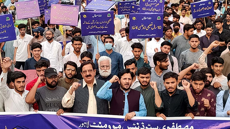 ایجوکیشن بجٹ مارچ سے خطاب کرتے ہوئے مصطفوی سٹوڈنٹس موومنٹ کے مرکزی صدر چودھری عرفان یوسف نے کہا کہ جی ڈی پی کا 5 فیصد تعلیم کے لئے مختص کیا جائے۔ ایجوکیشن بجٹ مارچ میں شریک طلباء نے مطالبہ کیا کہ طبقاتی نظام تعلیم کا خاتمہ کیا جائے، امن کی تعلیمات کو نصاب میں شامل کیا جائے۔ 10 سالہ تعلیمی ایمرجنسی نافذ کی جائے، تعلیمی نصاب کو جدید سائنسی خطوط پر استوار کیا جائے، تعلیمی اداروں کو کرپشن سے پاک کیا جائے۔